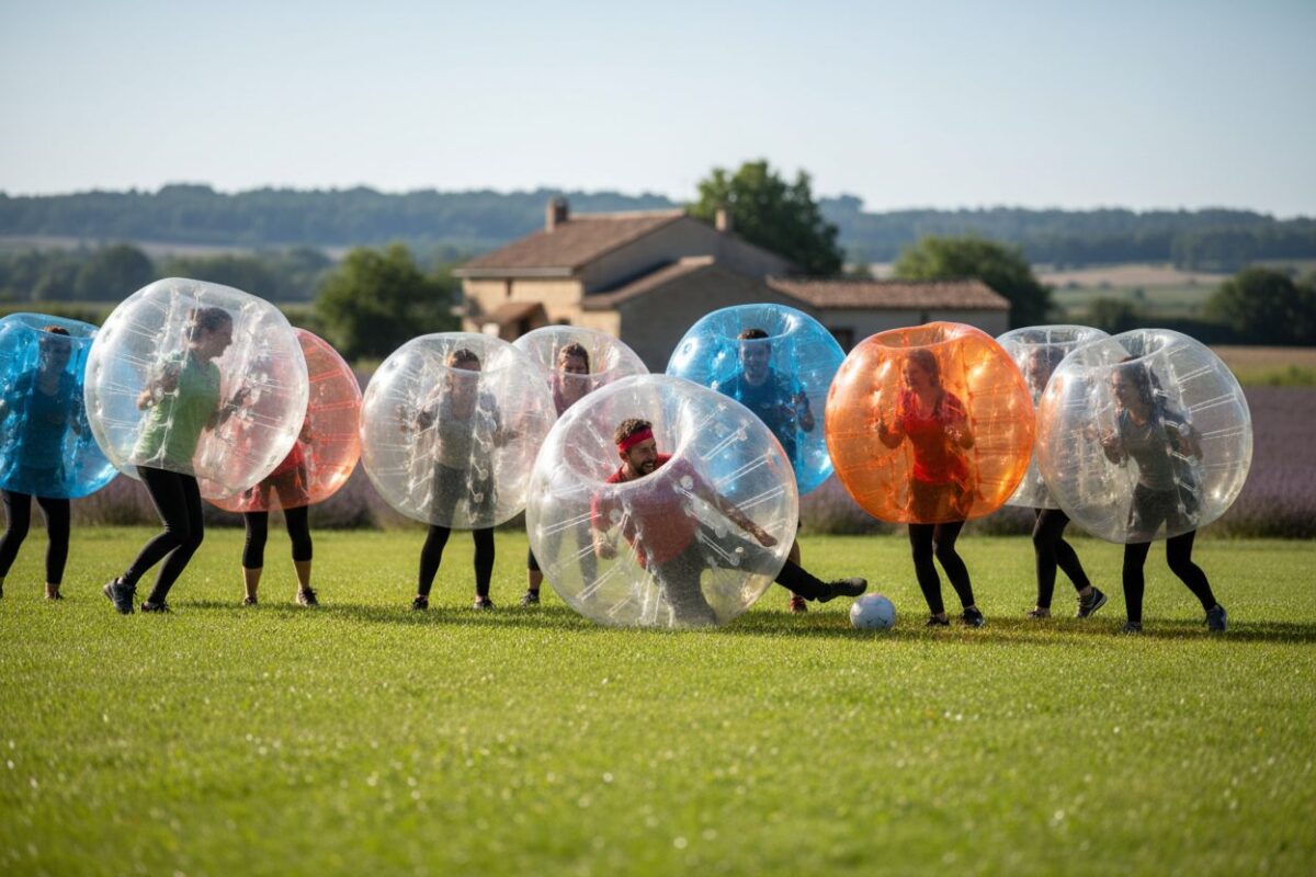 Le bubble foot, ou football bulle, est une variante du football où les joueurs, équipés de bulles gonflables, se lancent dans une partie endiablée. Cette activité est idéale pour un enterrement de vie de garçon, une fête d’anniversaire ou un événement d’entreprise. Grâce aux bulles gonflables qui enveloppent chaque joueur, les contacts deviennent plus amusants et sécurisés.
